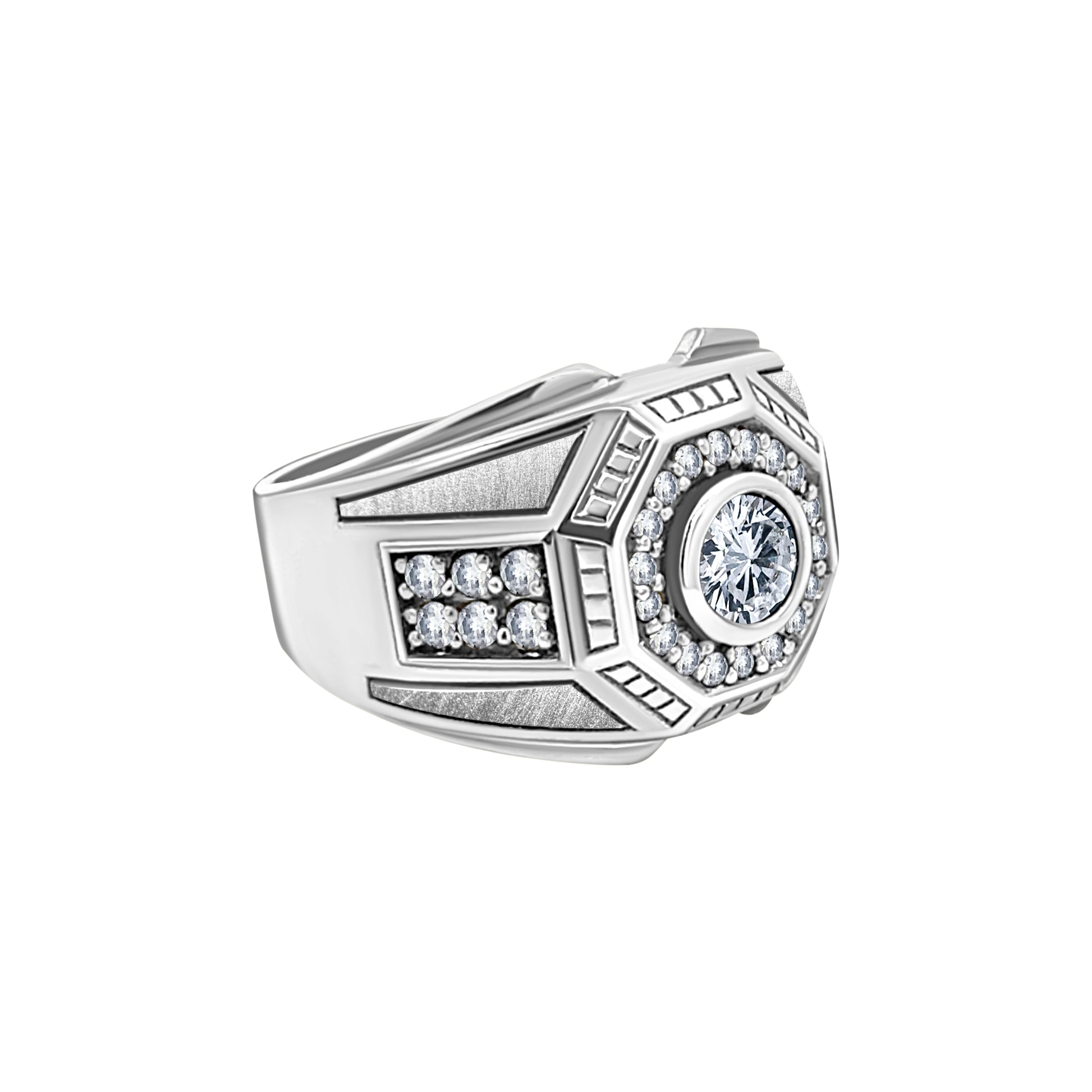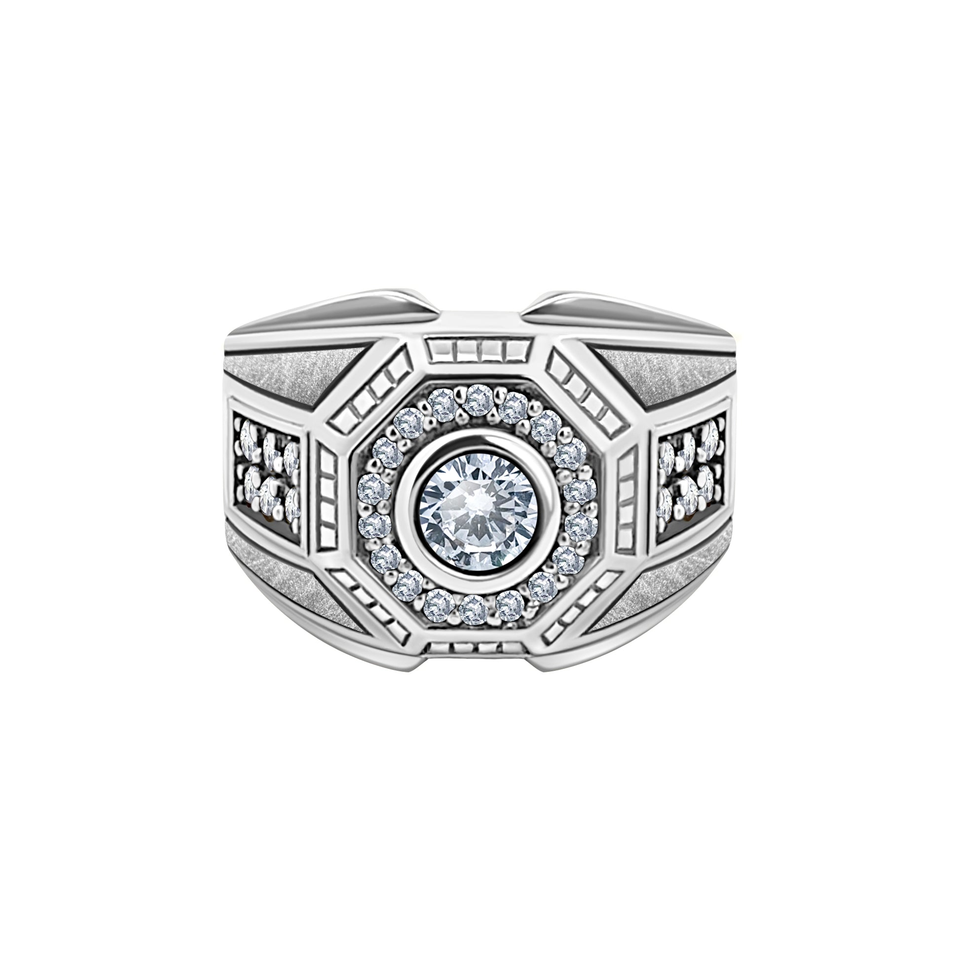 Command attention with this powerful Lucky Seven Ring, a symbol of strength, leadership, and bold elegance. Crafted with precision, this statement piece features an accent stone in the center, surrounded by a halo of hand-set cubic zirconia (CZ) stones for a radiant finish.