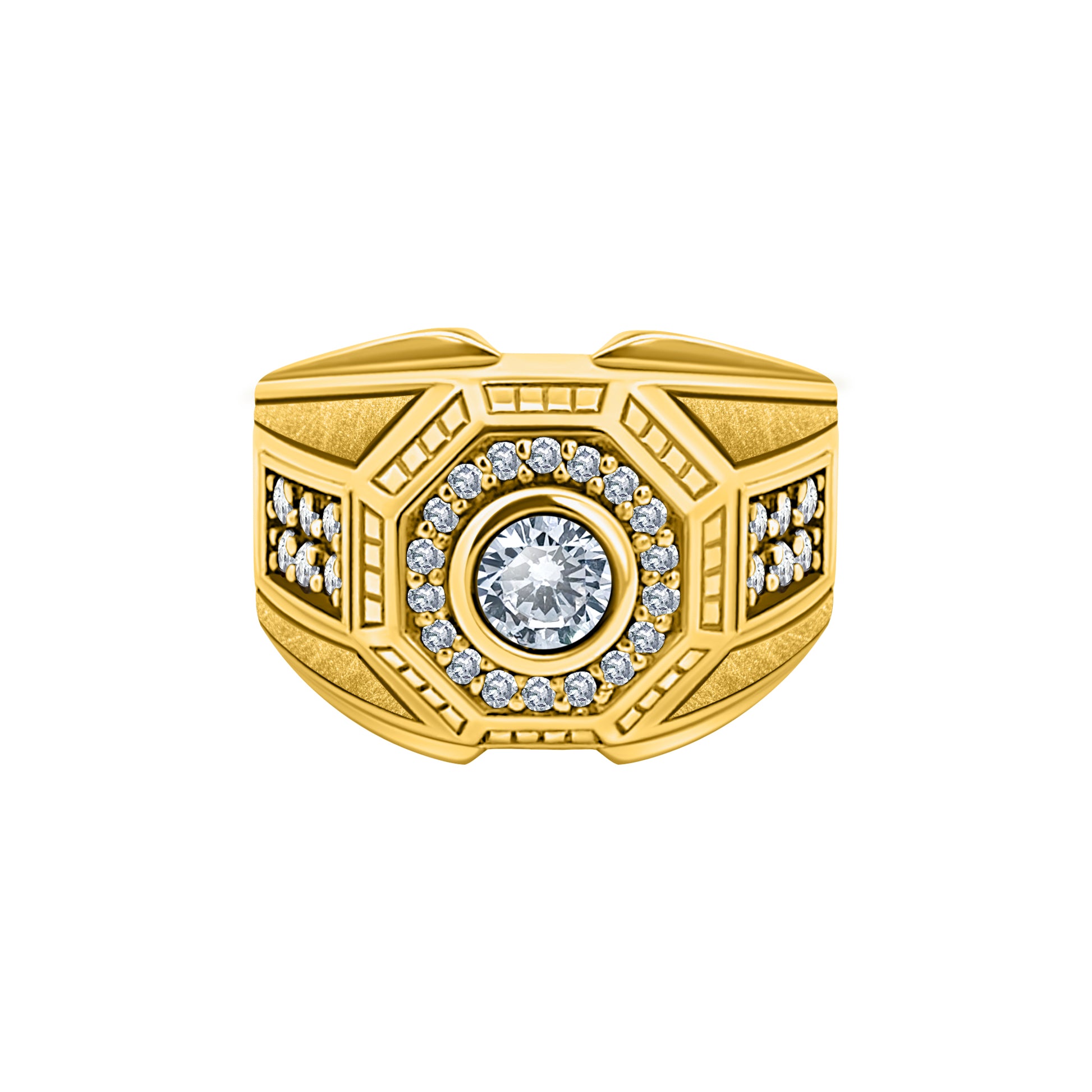 Command attention with this powerful Lucky Seven Ring, a symbol of strength, leadership, and bold elegance. Crafted with precision, this statement piece features an accent stone in the center, surrounded by a halo of hand-set cubic zirconia (CZ) stones for a radiant finish.