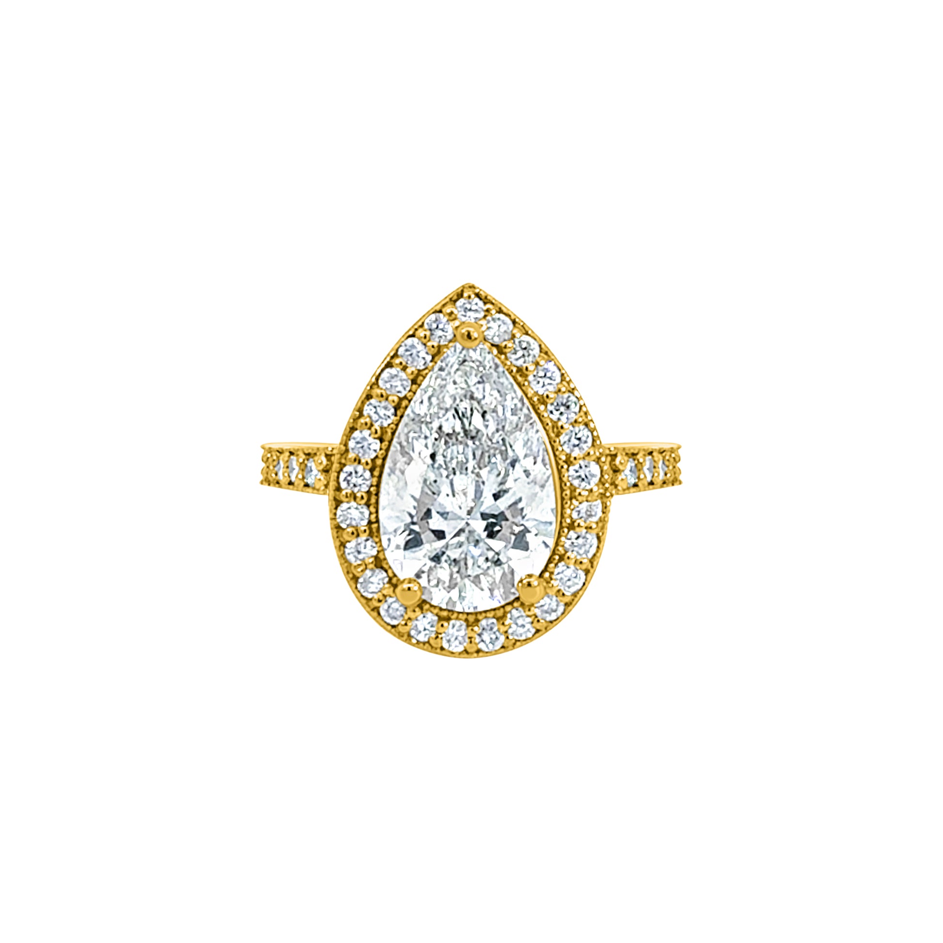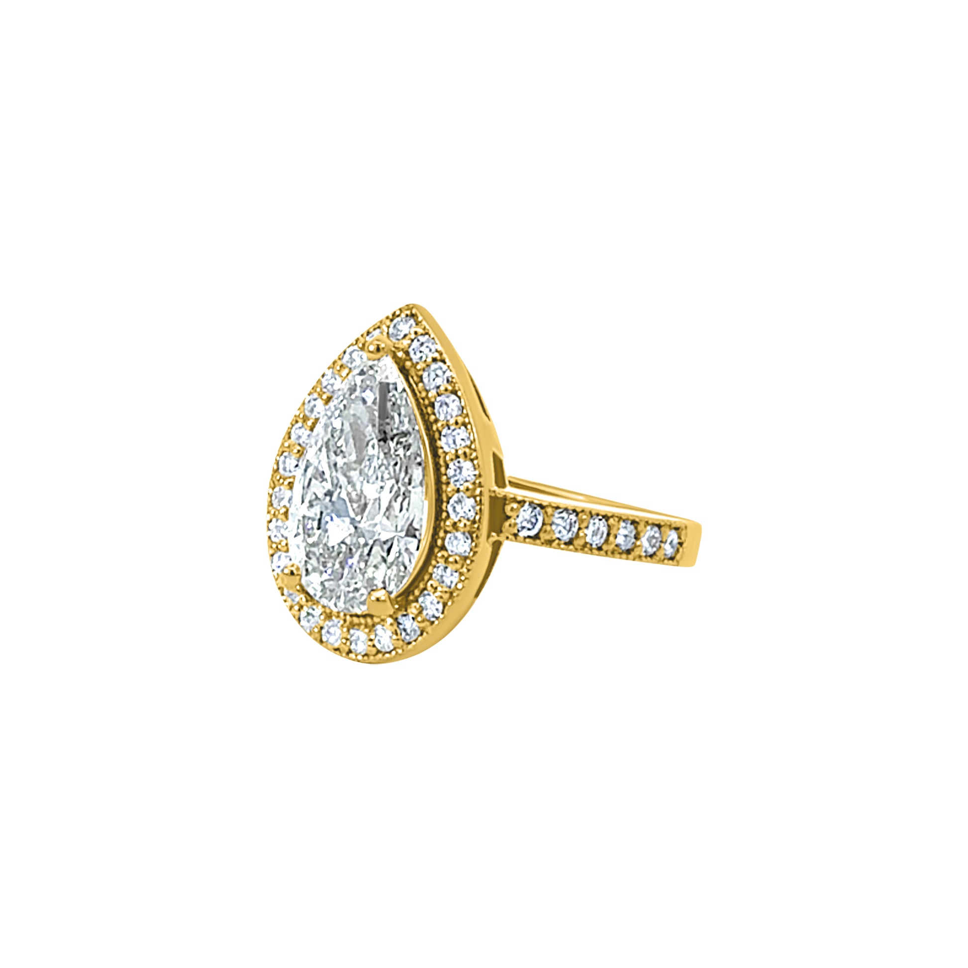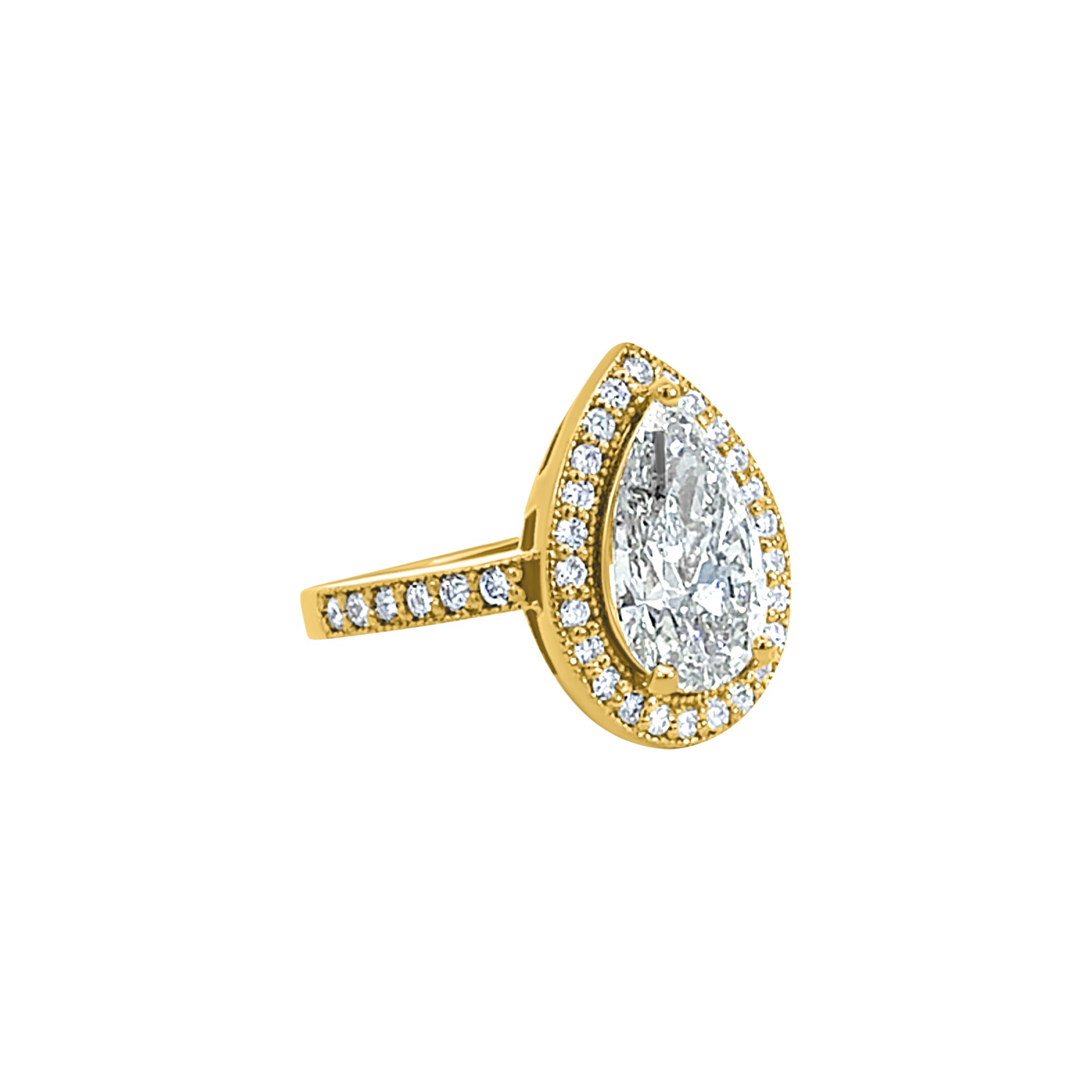 Yellow Gold Pear-Shaped Halo Diamond Ring